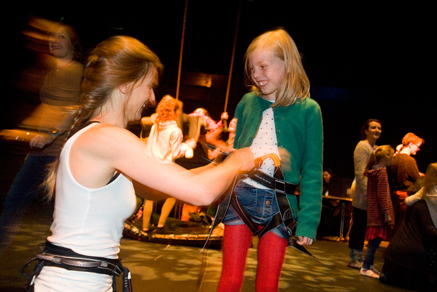After more explorations in the school and outdoors at Howick in Northumberland, we developed new performances and another sell out interactive installation for Northern Stage as part of the Juice Festival. This time we incorporated acrobatics and going higher than ever before in a counter balance harness system. With thanks to Arts Connect and all our associate artists and partners we have been able to deepen our original work to create a rich extended project. Here is the film: